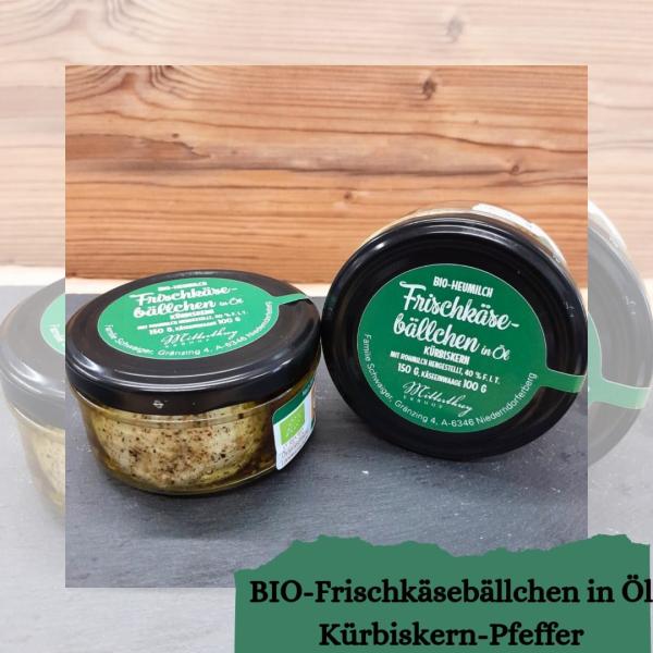 Frischkäsebällchen in Öl Kürbiskerne Pfeffer